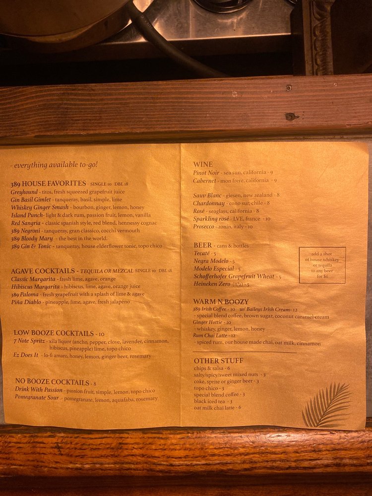 “ I need help understanding some of the bad reviews I'm reading about Room 389. Room 389 is a local bar where you can meet up with friends, cut a rug on Friday/Sat nights, watch a Warriors game, read, bring your dog, or vibe out with a Paloma after work. I visited 389 a lot 2014+ to watch sports, during COVID to grab to-go cocktails and coffee, and today, love coming here to catch up with friends and visit the resident DJs. The staff is always friendly. The owners and managers are wonderful. Room 389 is also dog-friendly, a big plus, and the bartenders are very receptive if you kindly ask them to change the channel to the Dub's game. :) +1 to the art they have here, love seeing them support great artists. What Room 389 is not is an upscale, pretentious cocktail bar where you're ignored or treated poorly. It's a neighborhood favorite that welcomes the community. I hope everyone continues to visit and support this great bar. ”